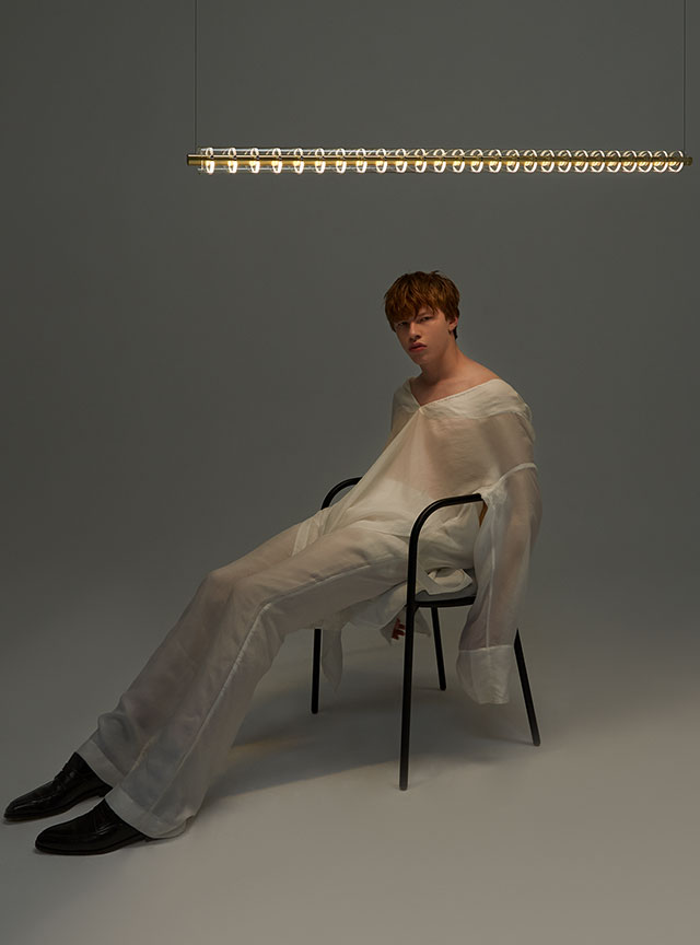 In this narrative, the Loop luminaire delivers an almost scenographic presence: its silhouette plays with light and transparency, creating atmospheres that envelop and suggest. More than illuminating, it accompanies the visual story with a poetic gesture, integrating design and emotion into a single creative language.