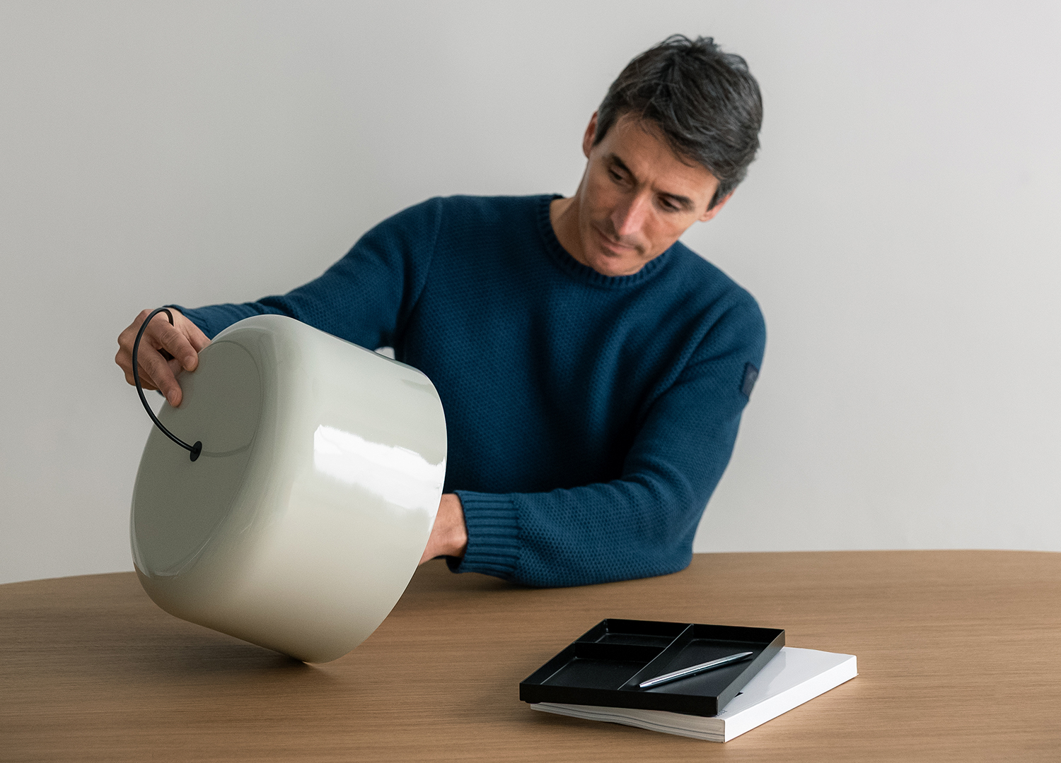 Il est entièrement construit en aluminium, un matériau léger, résistant et totalement recyclable de manière indéfinie sans perdre ses propriétés originales. D’autre part, je mettrais en avant la perception de qualité et de profondeur que procure sa finition extérieure laquée brillante, ainsi que la diffusion optimale de la lumière grâce à sa finition intérieure blanche mate soyeuse.