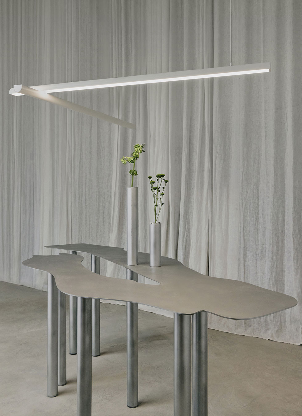 Con una forma industrial, y un diseño que nace a partir de la división de un cilindro de aluminio, Divi permite crear una infinidad de composiciones decorativas dejando expandir la creatividad.