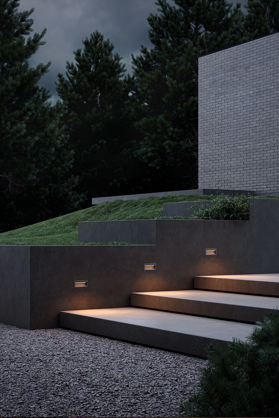 La colección Slim amplía su adaptabilidad en exterior en su versión Mini, un bañador de suelo especialmente concebido para pasillos o escalones. Su cuerpo marcadamente fino y alargado, junto con un preciso trabajo óptico, proyecta una luz horizontal, constante y homogénea. Slim Mini es el resultado de una iluminación que guía el tránsito de forma natural, eliminando las sombras habituales entre luminarias y en los márgenes del recorrido.