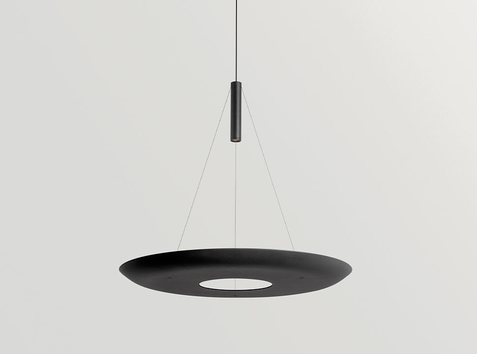 A través de una luz indirecta envolvente y una luz puntual precisa, Zenit busca iluminar espacios de doble altura, convirtiendo su nombre en una gran oda a la verticalidad. Su geometría circular incorpora una luz indirecta meticulosamente integrada en la parte superior de la luminaria, al mismo tiempo que su downlight ofrece un punto de luz de gran potencia lumínica en la parte inferior. Una combinación idónea para crear una atmósfera funcional y acogedora al mismo tiempo.