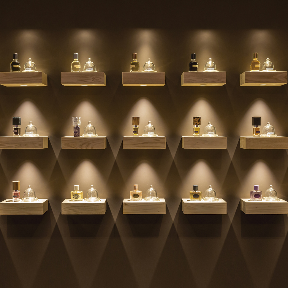 Iluminación de acento integrada y discreta, que aumente el valor estético de los productos para incitar a la compra.