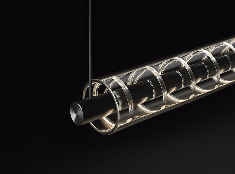 Una secuencia maestra de 26 lentes en forma de anillos de luz con interior de aluminio y vestida por un cilindro de vidrio que protege y enriquece su estética. Diseñada por Rubén Saldaña – director de producto de Arkoslight -, Loop fue presentada en 2023 y desde su lanzamiento no ha dejado de cosechar premios de gran prestigio internacional como el Red Dot Design Award o Archiproducts Design Award.