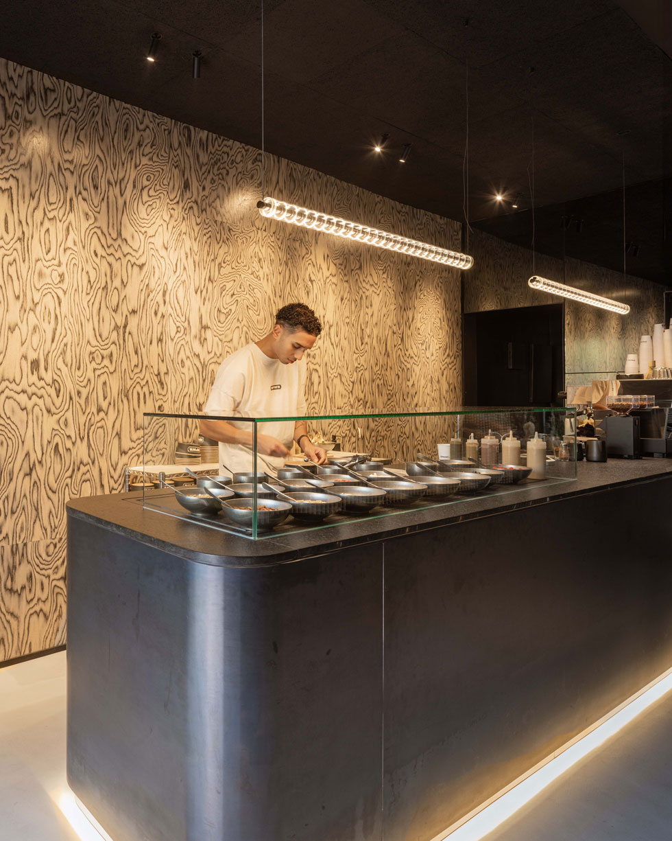 La fachada minimalista, los tonos oscuros, el enchapado en madera y la iluminación cuidadosamente diseñada no solo son decisiones estéticas, sino también herramientas que transmiten el carácter y la esencia de MPWR.